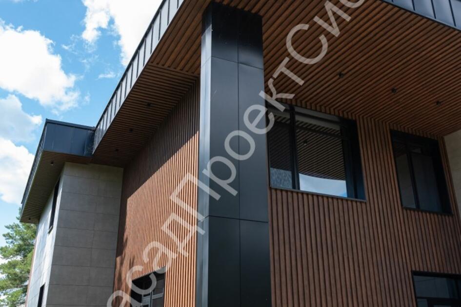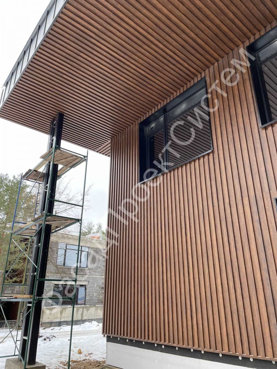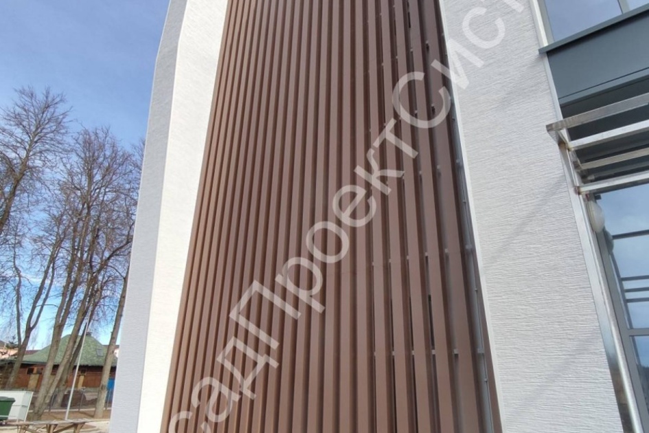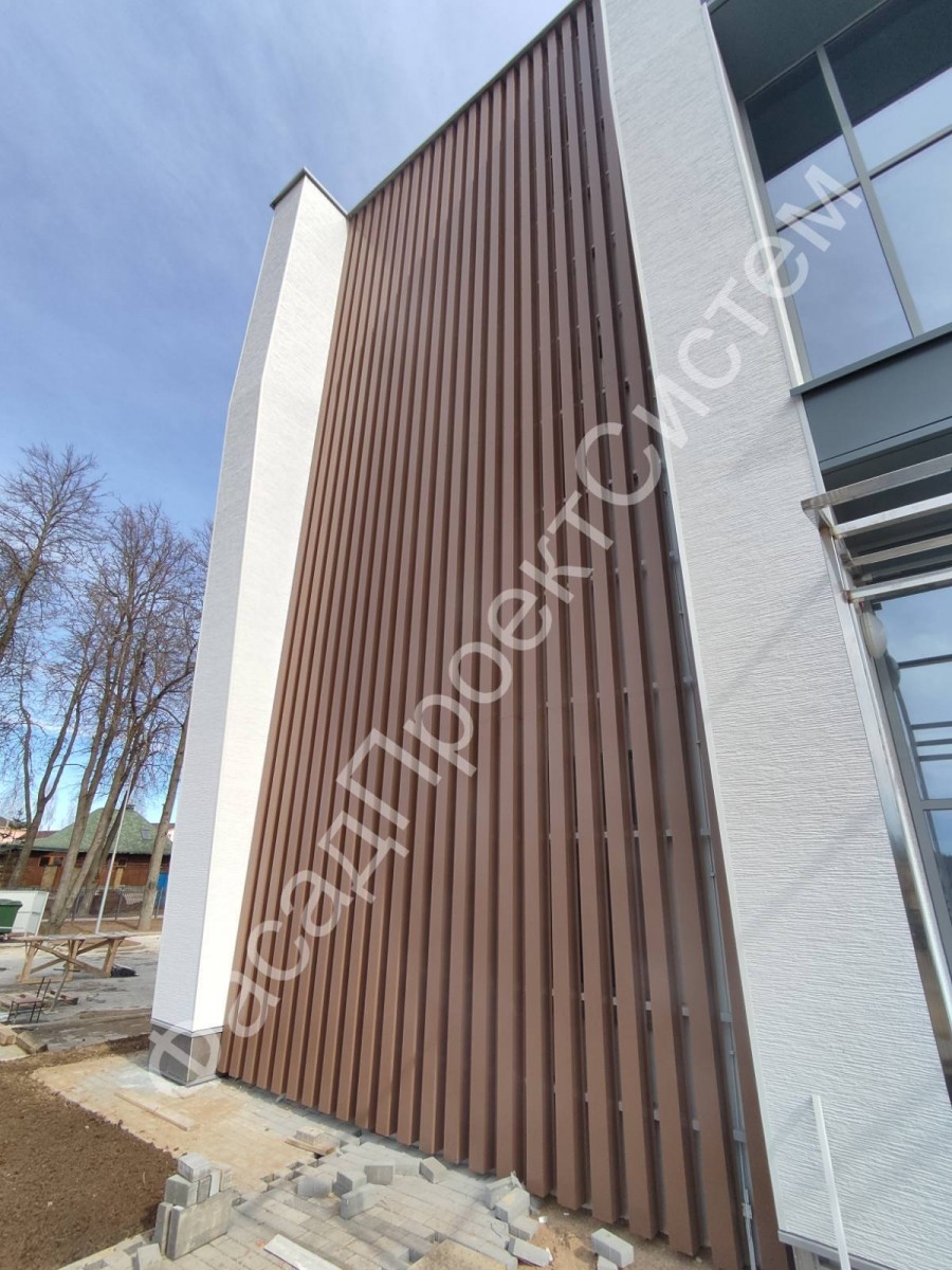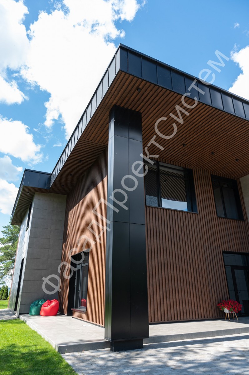 - Фасады: Используются для создания вентилируемых фасадов. Ламели придают зданию современный архитектурный облик и защищают стены от внешних воздействий.