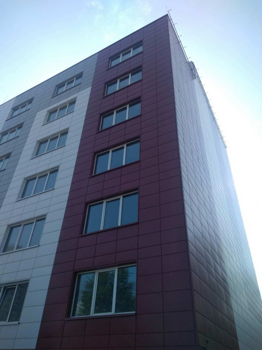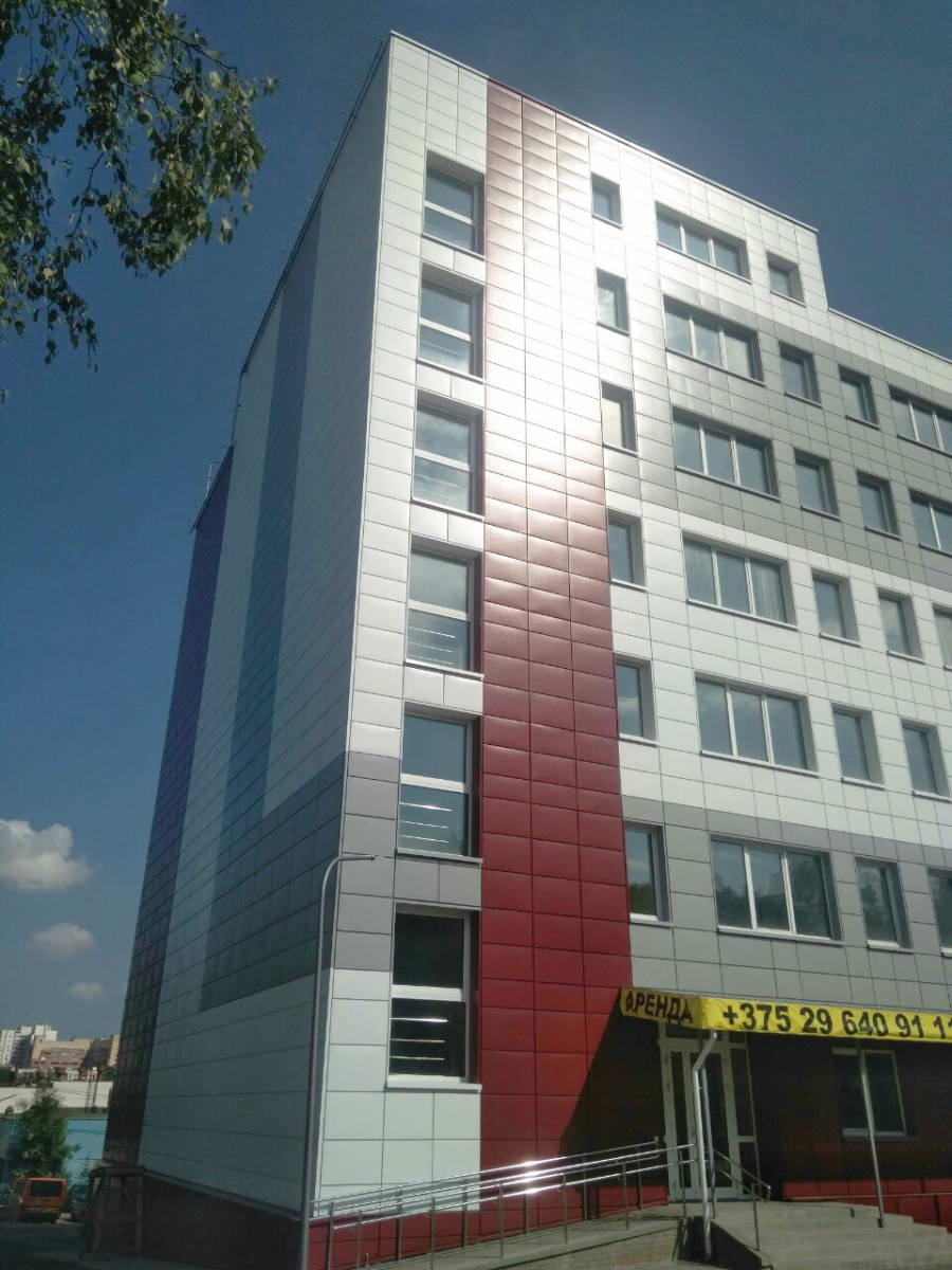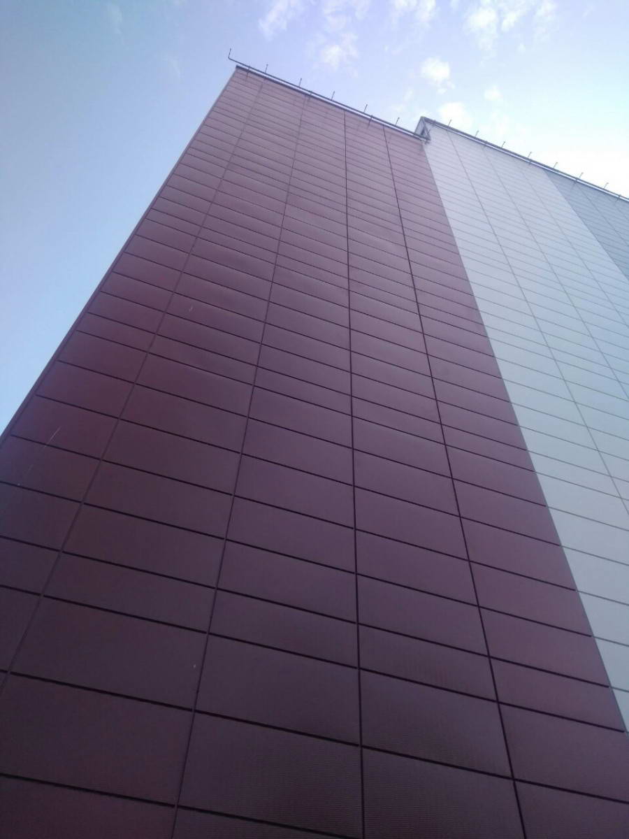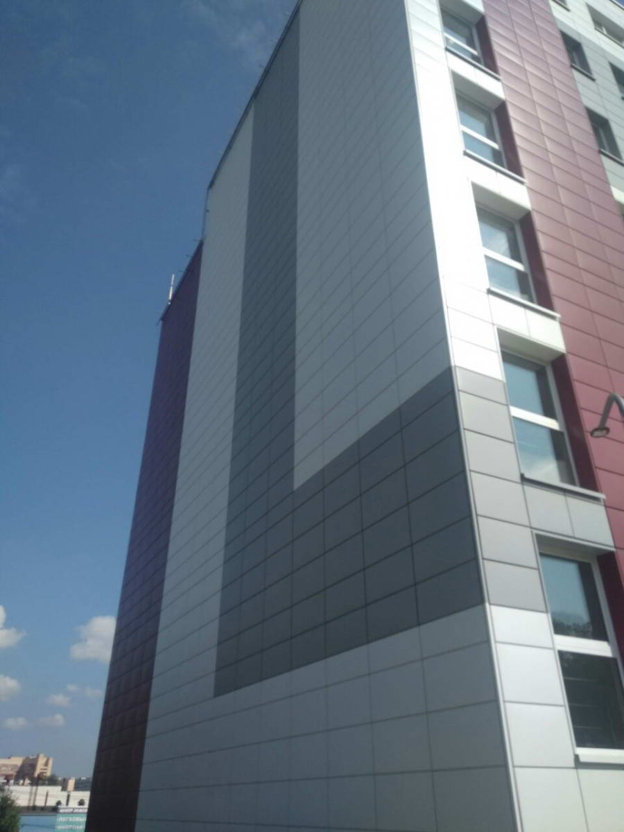 Облицовка кассетами из оцинкованной стали 1600 м2 фасонные изделия из оцинкованной стали 500 м2. Подсистема вертикально-горизонтальная, оцинкованная.