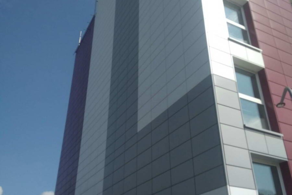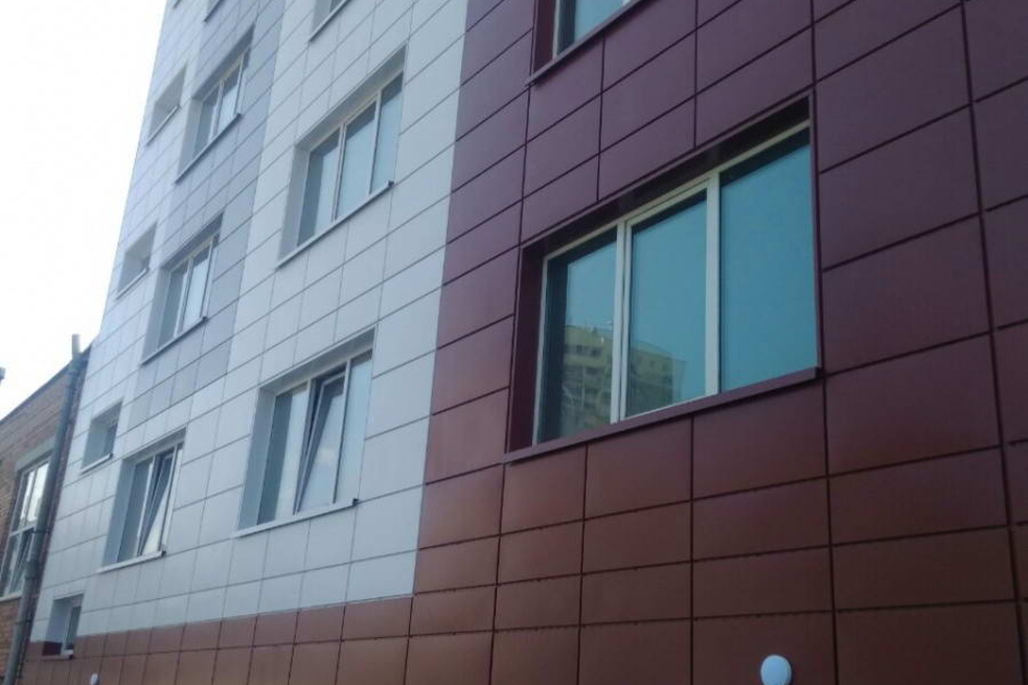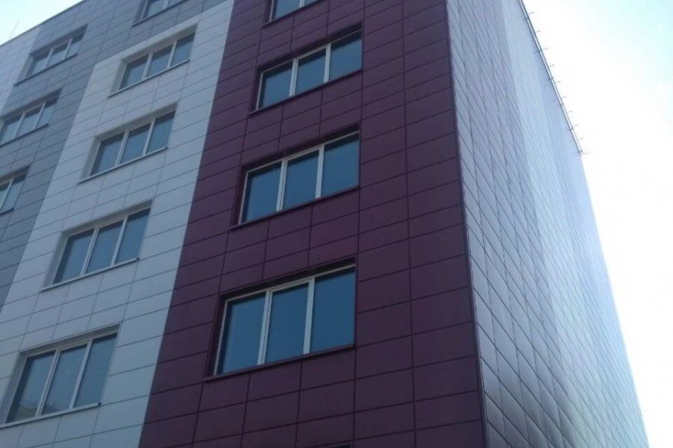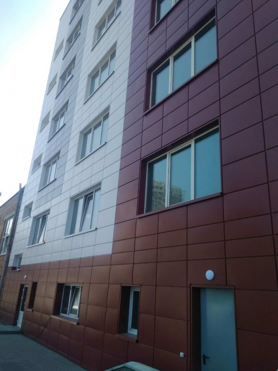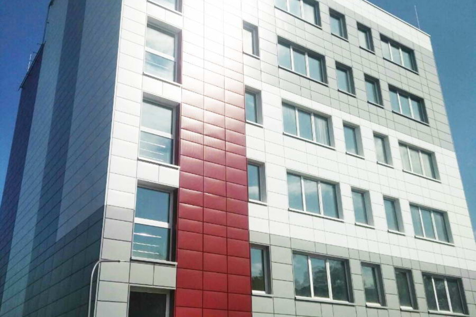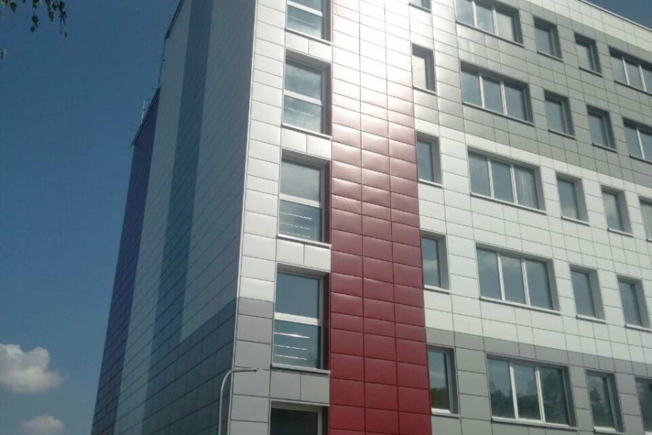 Облицовка кассетами из оцинкованной стали 1600 м2 фасонные изделия из оцинкованной стали 500 м2. Подсистема вертикально-горизонтальная, оцинкованная.